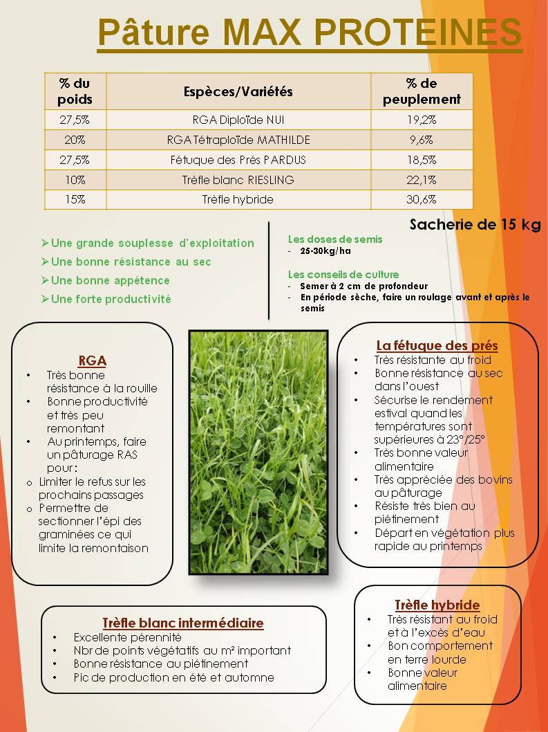 • La fétuque des prés s’implante bien (8 à 10 kg/ha en mélange)