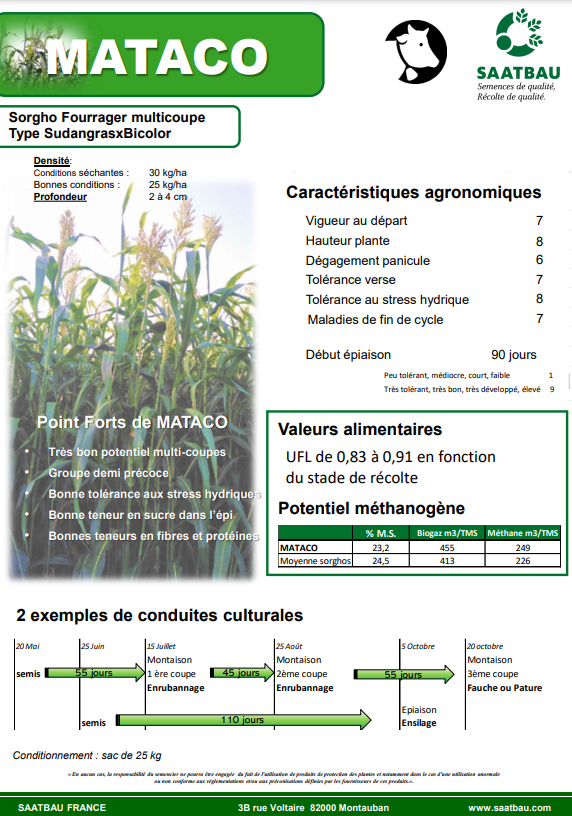 - Le sorgho doit impérativement être semé en fin de printemps ou début d’été pour produire une biomasse suffisante.
